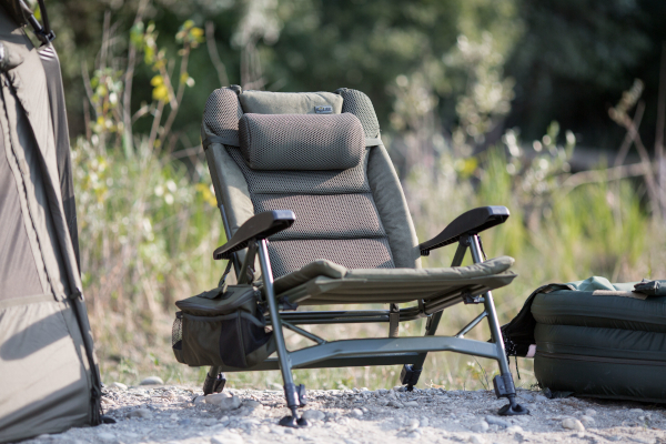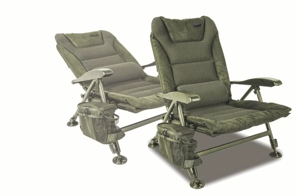 De Solar SP C-Tech Recliner Chair is in 2 varianten beschikbaar, een laag model (89×54×36cm) en een hoog model (104×52×48cm). Deze zeer luxe stoel is uitgevoerd met een groen exclusief 3d duradore air-pocket matras en het frame is volledig van aluminium. De rugleuning is in 3 standen verstelbaar en om het comfort te verhogen voorzien van degelijke arm leuningen. Deze luxe stoel is uitgerust met unieke spring-loc poten met daaronder moddervoeten waarmee je op ieder terrein terecht kunt. De stoel is volledig inklapbaar dus makkelijk tijdens transport. Meegeleverd is een handige organiser voor aan de arm leuning die past op alle stoelen en stretchers van Solar. Kortom een zeer comfortabele en luxe stoel die zeker ook voor de langere vis sessies een waar genot zal zijn!